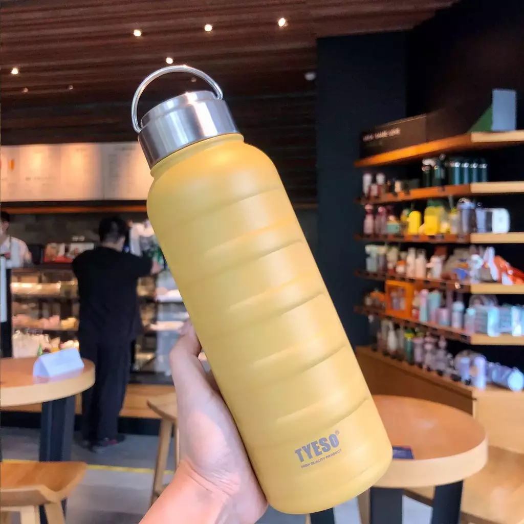 A garrafa Tyeso tem construção em aço inox com pintura de excelente qualidade, mantém o liquido gelado por até 48h e quente por até 18h.